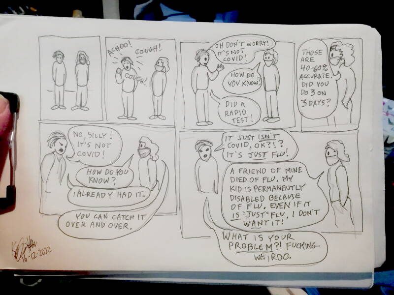 First of all, I need to express that I am both furious at and forgiving of a lot of performers. Yes, performers. This is important. MOST of them haven't been exposed to a large enough dose of truth about the pandemic, and way too much obfuscating Public Health messaging and media speculation, so they think Public Health is correct and it's totally fine to hold mass events. This is terrible. So OK, not technically their fault; they're busy, they're on the road, their livelihood depends on Public Health being right. They might not even have HEARD the facts, like that there is no lasting immunity from an infection, like that each infection causes further cumulative damage to every organ in the body because this is a VASCULAR disease, that even vaccinated people get and transmit covid and are vulnerable to long covid, that the chances of a vascular event like a stroke, heart attack, or DVT increase EIGHTFOLD after even a very mild infection. That it erodes the immune system's T and B cells. That it erodes mood regulation, decision-making, energy levels. That the newest variants evade all our immunity attempts and all the treatments we have so far scrabbled together. People who do know these things and keep warning about them are increasingly labeled as kooks. I know because I am one of them.