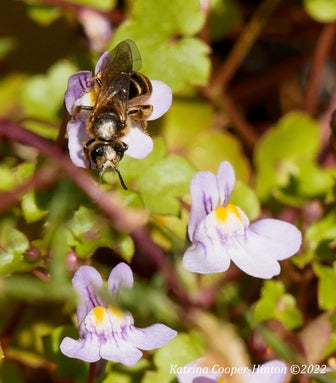 Not a specific species but a category, these usually metallic bees nest in tunnels or under tree bark. I see quite a few of them.
