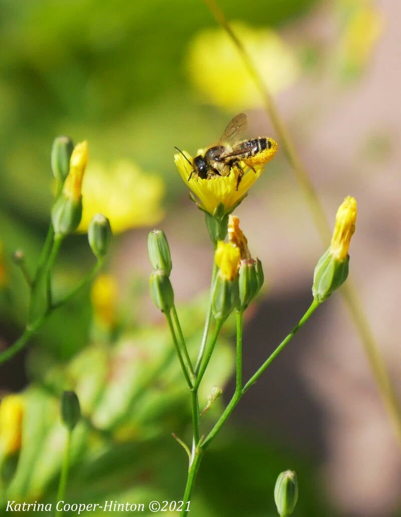 I don't see as many of these as some of the other kinds but they're far from infrequent visitors. They really like the borage in my garden, and the cotoneaster and dandelions. Reading up on them I learn that they tend to create loose, smaller colonies of up to 200 individuals, socially close (and therefor warm), and can range for more than a kilometer while foraging. They nest and forage at higher temperatures than most other bees, making them an extremely important pollinator as they can nest into hotter areas than others, and suffer less from extreme heat.
