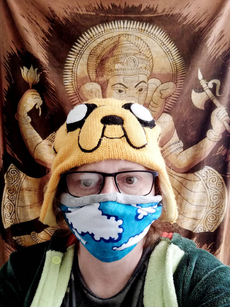 Some of it has been practical: we haven’t been wearing masks because we don’t go near anybody when we go out, whether it’s my husband’s regular necessary trip to the supermarket, taking my kid to the doctor, or just going for a short neighborhood walk. That said, it’s likely to become mandatory at any moment to wear facial gear when out of doors and we should be prepared. I’ve been laboriously making masks, thus, but I do not